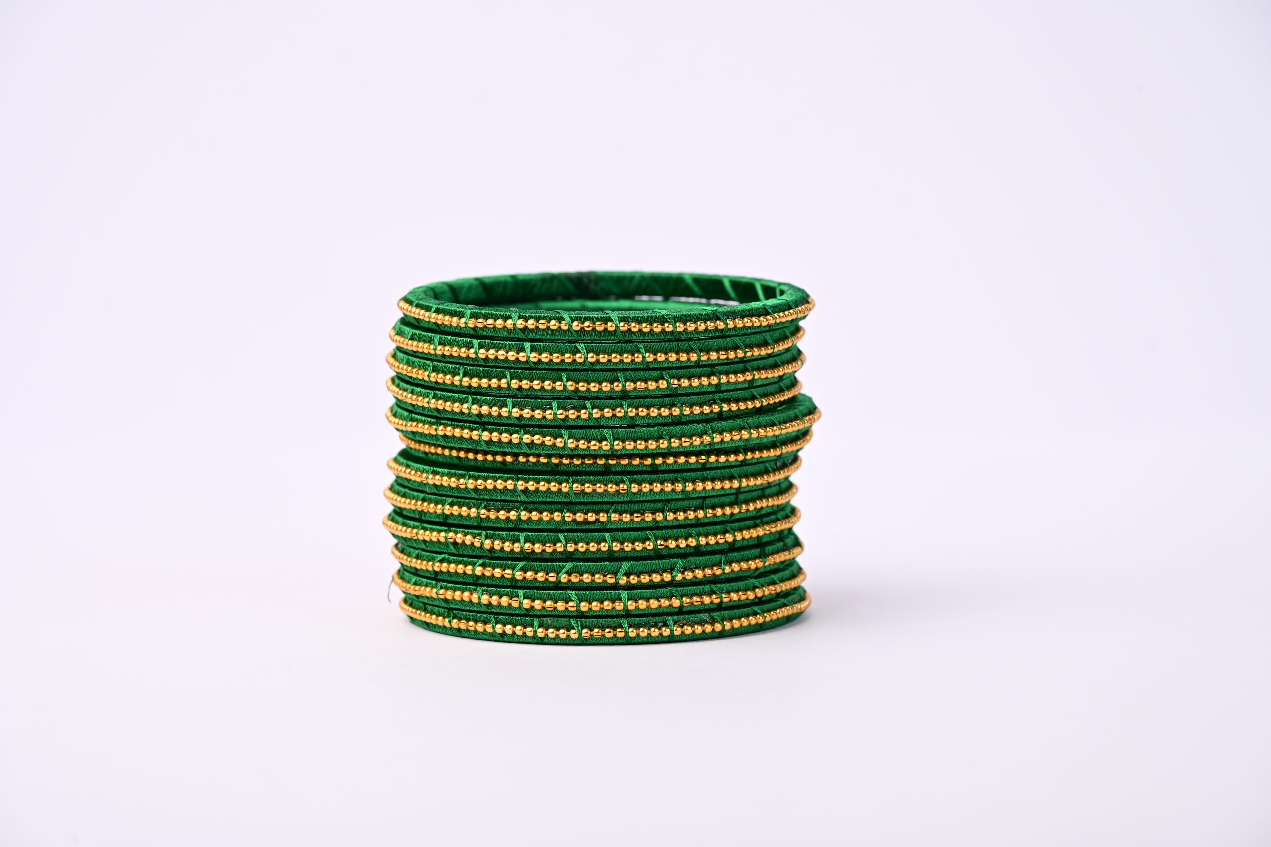 These traditional green and gold bangles are a popular choice among Indian women, especially worn during festivals, weddings, and auspicious occasions such as Haldi, Mehendi, or religious ceremonies. Crafted with meticulous care, these bangles often use high-quality materials such as silk thread or glass, adorned with golden bead detailing to highlight their elegance. Known for their smooth and lightweight texture, they offer comfort and a pleasant sound when worn in multiples. The vibrant green color is associated with prosperity and good fortune in Indian culture, enhancing the wearer’s festive and ethnic look while preserving cultural heritage. These bangles are suitable for all age groups, with no consumption restrictions, and are designed for daily wear or special events, making them a versatile addition to any jewelry collection. Typically handmade in various regions of India, their unique selling proposition lies in their intricate craftsmanship and connection to traditional rituals.